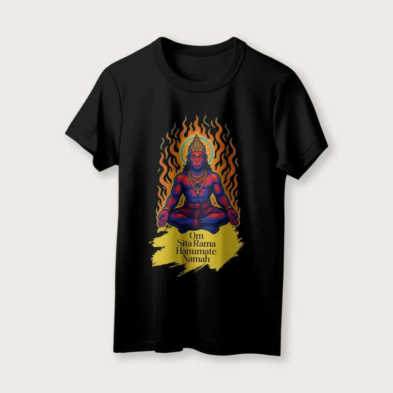 Om Sita Rama Hanumate Namah | English | Unisex T-Shirt | 100% Cotton | Regular Fit | Spiritual Graphic Tee | D1