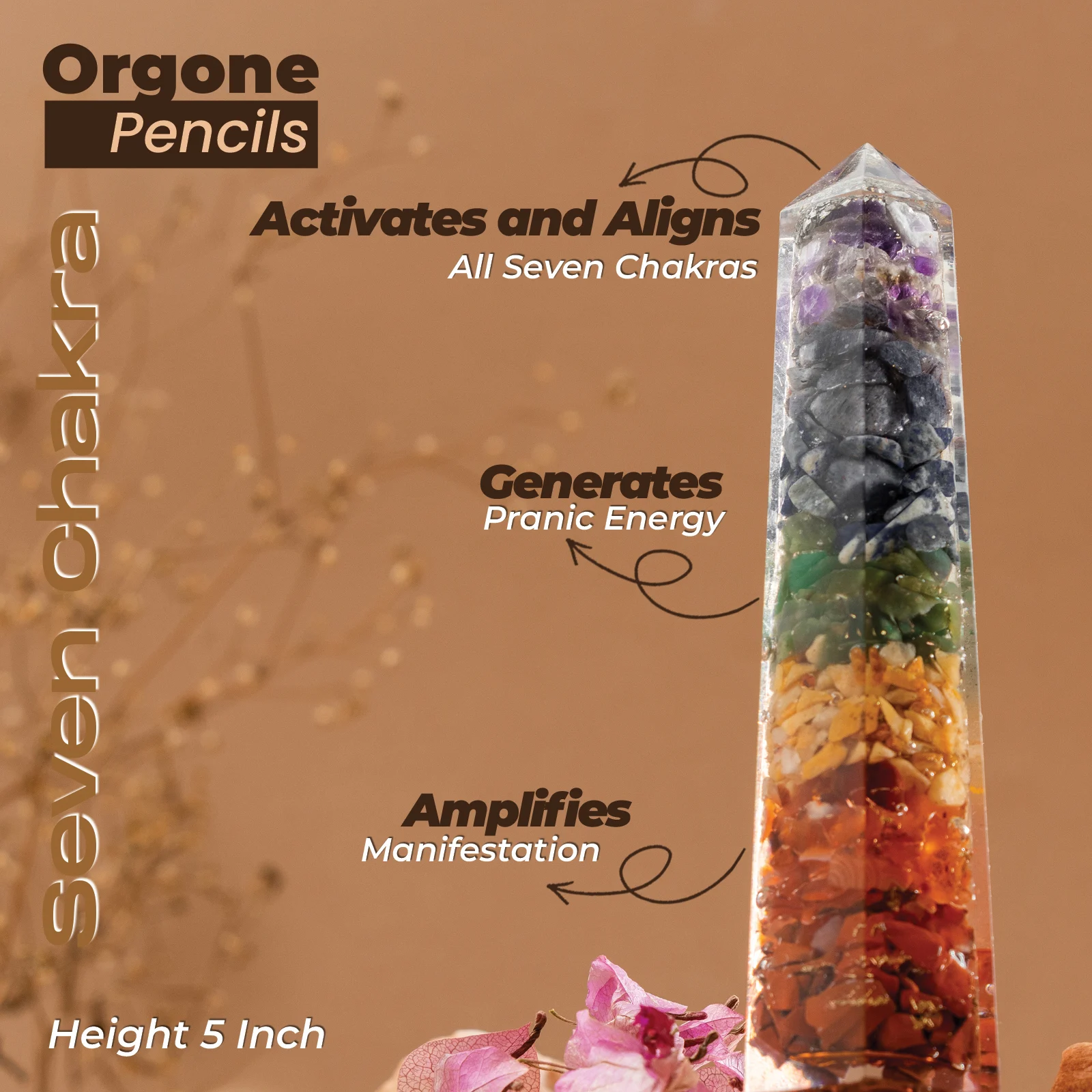 - Crafted from Orgonite crystals representing each chakra, this healing pencil channels positive energy through your body, boosting immunity and protecting against illnesses.