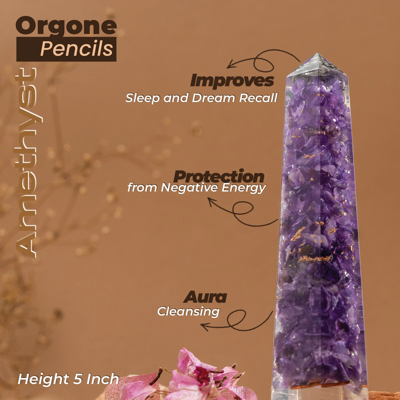 - Experience amplified energy and vibrations with the Orgon Amethyst Pencil, which transforms negative energy into positive energy for a purified atmosphere.