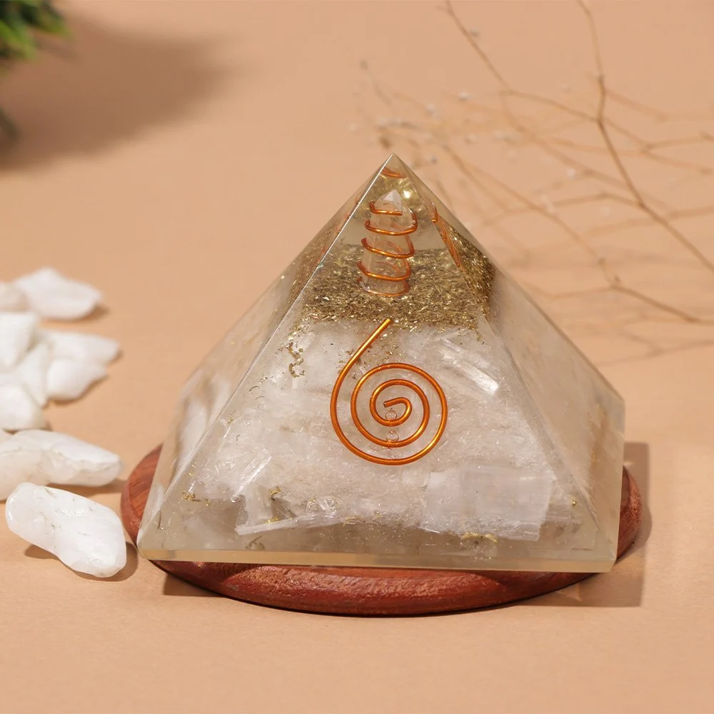 This Selenite Pyramid induces mental clarity and emotional stability with its ethereal vibration.