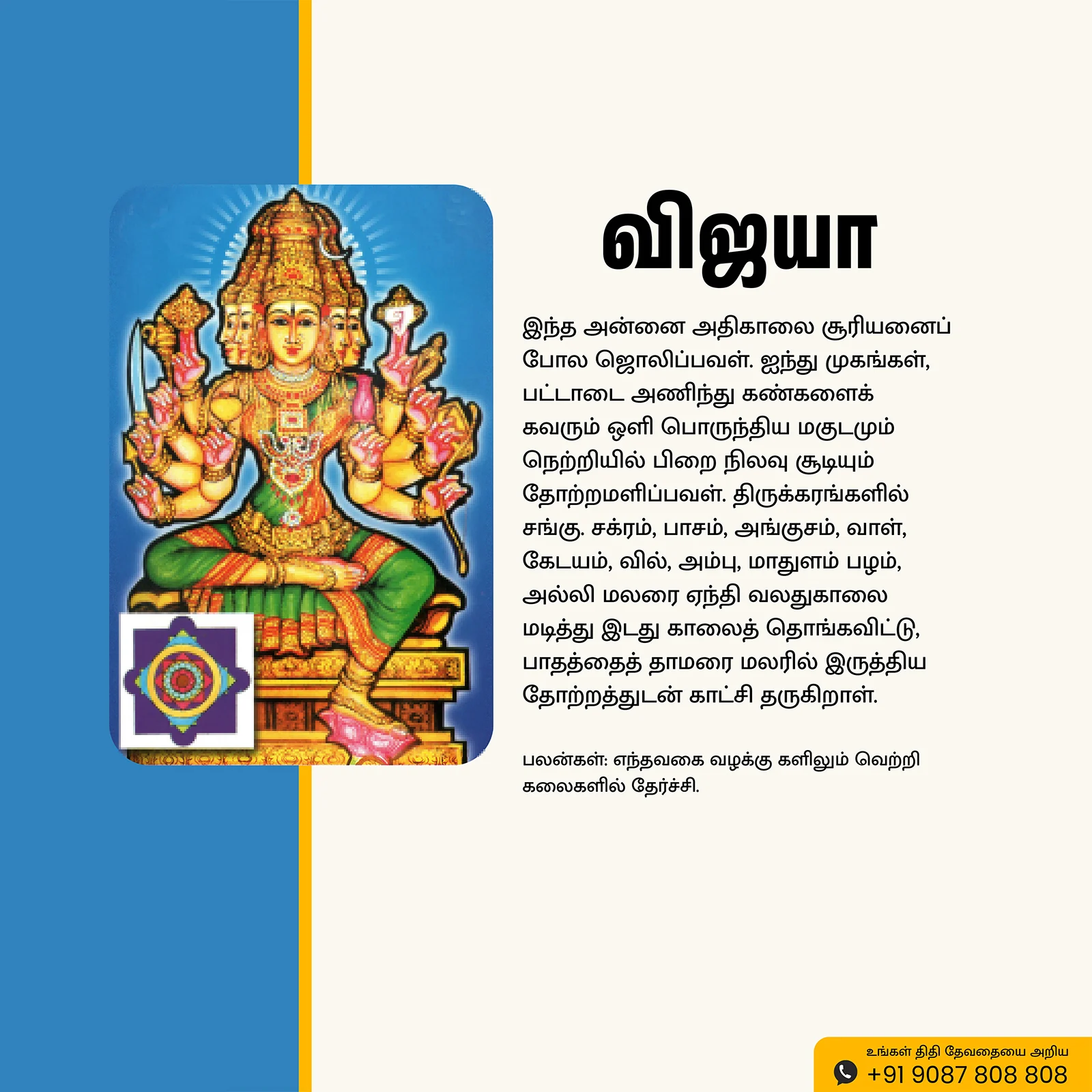 Sri Vijaya | Thithi Devathai | Energized Powerful Photo Frame | 6×8 inch