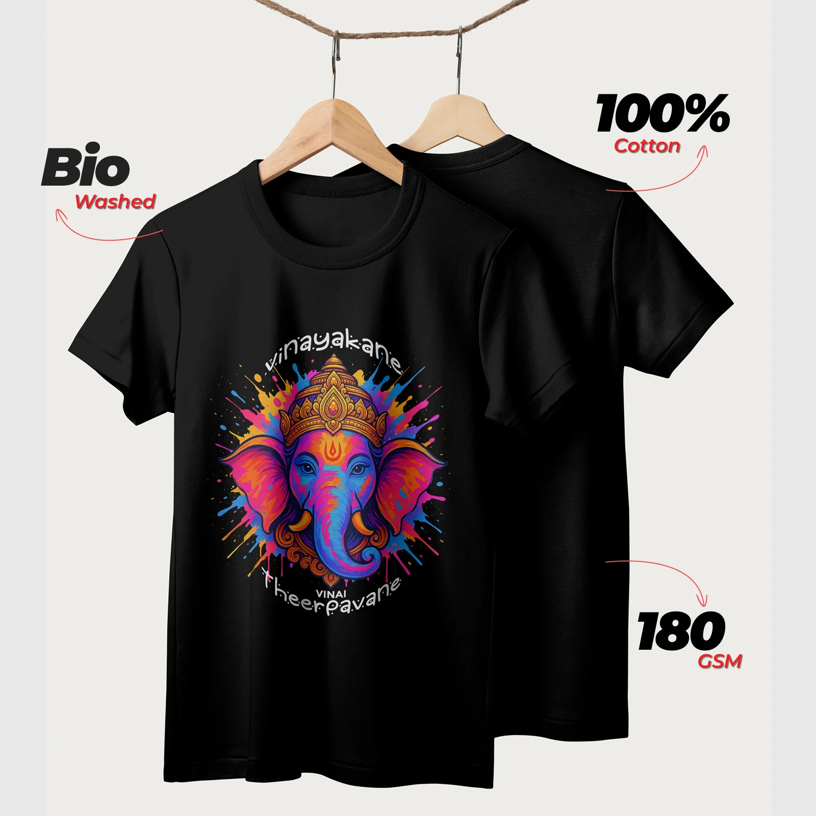 Vinayagane Vinai Theerapavane | English | Unisex T-Shirt | 100% Cotton | Regular Fit | Spiritual Graphic Tee | D1